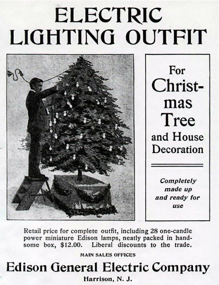 Sznury znacznie bezpieczniejszych od świec lampek elektrycznych zawdzięczamy z kolei Amerykanom. Jako pierwszy zastosował je na swojej domowej choince Edward Johnson (wiceprezes firmy Thomasa Edisona, która udoskonaliła wynalazek żarówki), dekorując w 1882 roku świąteczne drzewko osiemdziesięcioma niebieskimi, czerwonymi i białymi żaróweczkami. Początkowo była to ozdoba zbyt droga dla przeciętnego domu, ale wkrótce zaczął ją stosować w swojej witrynie niejeden sklep, w zaś miarę jak technologia produkcji taniała, wkraczała też do mieszkań. Choinkowe świece zostały jednak całkiem wyparte przez elektryczne lampki dopiero pół wieku później.