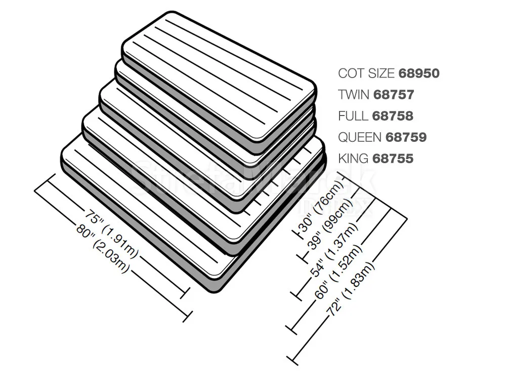 Wymiary materaca pochodzą z katalogu producenta i mogą różnić się o +/- 5 cm w zależności od stopnia napompowania i temperatury otoczenia. Mierzone w skrajnych punktach.