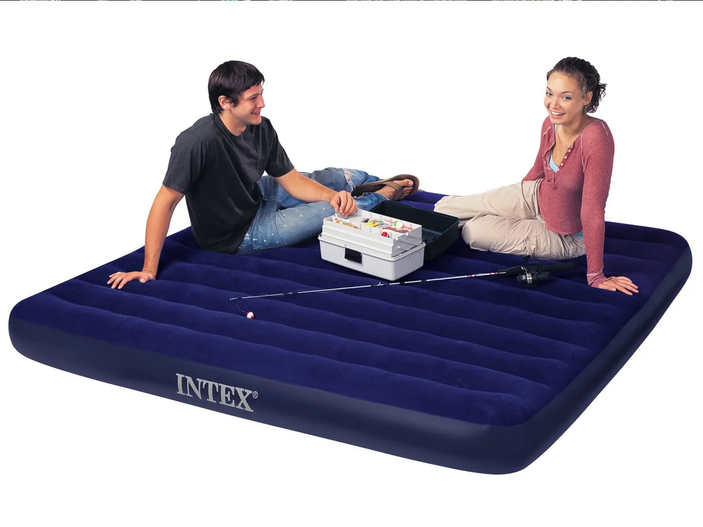 Materac welurowy King INTEX, o wymiarach 203 x 183 x 22 cm jest największy w swojej serii. Dzięki jego obszerności, wyśpią się nawet 3 osoby. Wykonany z mocnego, tworzywa PVC, na górze został pokryty przyjemnym wodoszczelnym materiałem welurowym.