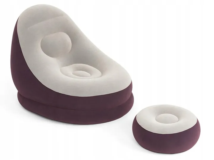 Całość wykonano z mocnego PVC, a górną część pokryto przyjemnym w dotyku welurem. Gdyby pojawiły się w nim przetarcia, bez trudu załatasz je przy pomocy dołączonej łatki naprawczej. Wewnętrzny stelaż Coil-Beam oraz dwie komory powietrzne zapewniają fotelowi stabilność. Fotel nadaje się do użytku w pomieszczeniach, ale także na świeżym powietrzu.