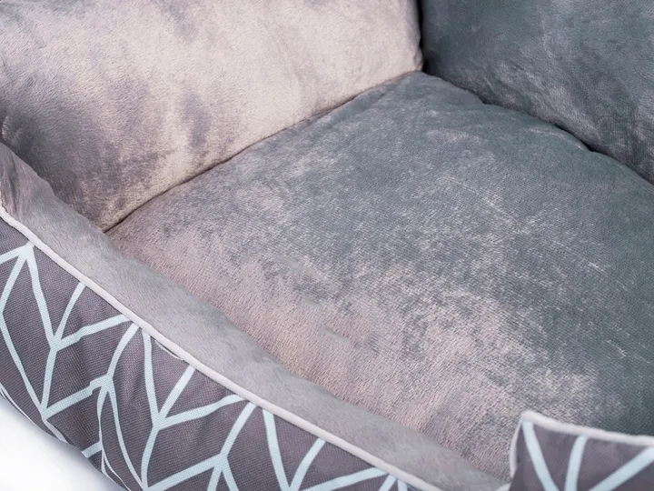 Prostokątne, przestronne legowisko, w którym Twój ulubieniec może swobodnie odpoczywać. Znajdzie tam dla siebie wystarczająco dużo miejsca, aby podczas snu się wyciągnąć lub obrać dowolną pozycję. Boki oraz górna część legowiska pokryte zostały miękkim i ciepłym polarem.