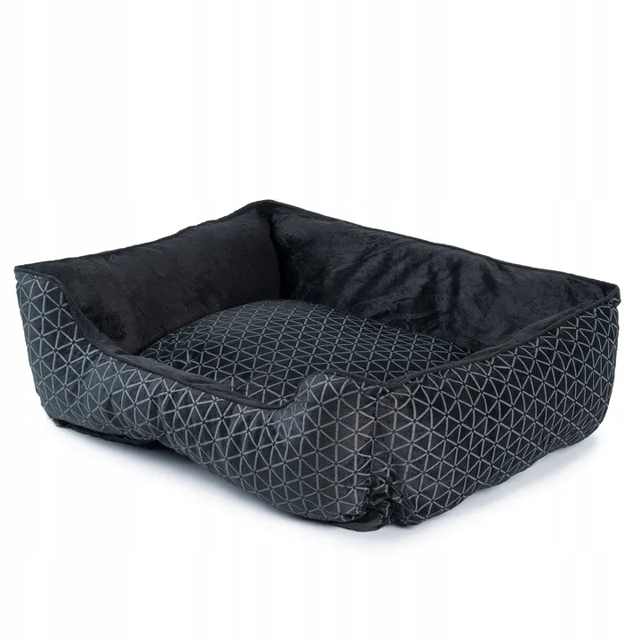 Prostokątne, przestronne legowisko, w którym Twój ulubieniec może swobodnie odpoczywać. Znajdzie tam dla siebie wystarczająco dużo miejsca, aby podczas snu się wyciągnąć lub obrać dowolną pozycję. Boki oraz górna część legowiska pokryte zostały miękkim i ciepłym polarem.