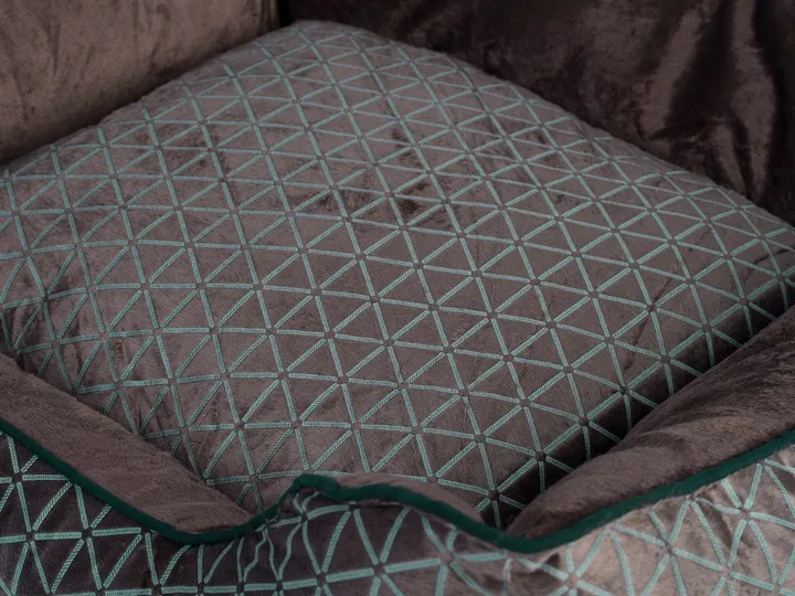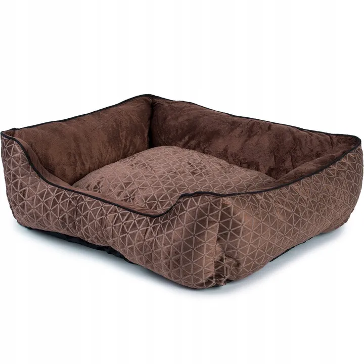 Prostokątne, przestronne legowisko, w którym Twój ulubieniec może swobodnie odpoczywać. Znajdzie tam dla siebie wystarczająco dużo miejsca, aby podczas snu się wyciągnąć lub obrać dowolną pozycję. Boki oraz górna część legowiska pokryte zostały miękkim i ciepłym polarem.