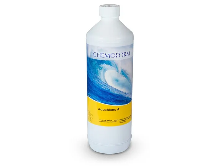 Dozowanie uzupełniające: Co 14 dni 100 ml Aquablanc A na każde 10 m3 wody. Raz w tygodniu 100 g = 1 miarka Aquablanc O2. Aquablanc A nie dolewać do skimmera, dozować bezpośrednio do wody basenowej. W basenach ze sztuczną falą i w wannach fontannowych dozowanie wyliczyć zgodnie z pojemnością basenu. Aquablanc O2 dozować nieco częściej i w większych ilościach. W miarę możliwości dozować wieczorem. W przypadku szczególnego obciążenia wody lub po dłuższej nieobecności, w celu usunięcia zmąceń, można stosować produkt Chemochlor T-Granulat 65. Zawartość tlenu w niecce basenowej nie może być mniejsza niż 0,5 mg/l. Wartość pH należy utrzymywać na poziomie 7,0 - 7,4 (wg. Normy DIN).