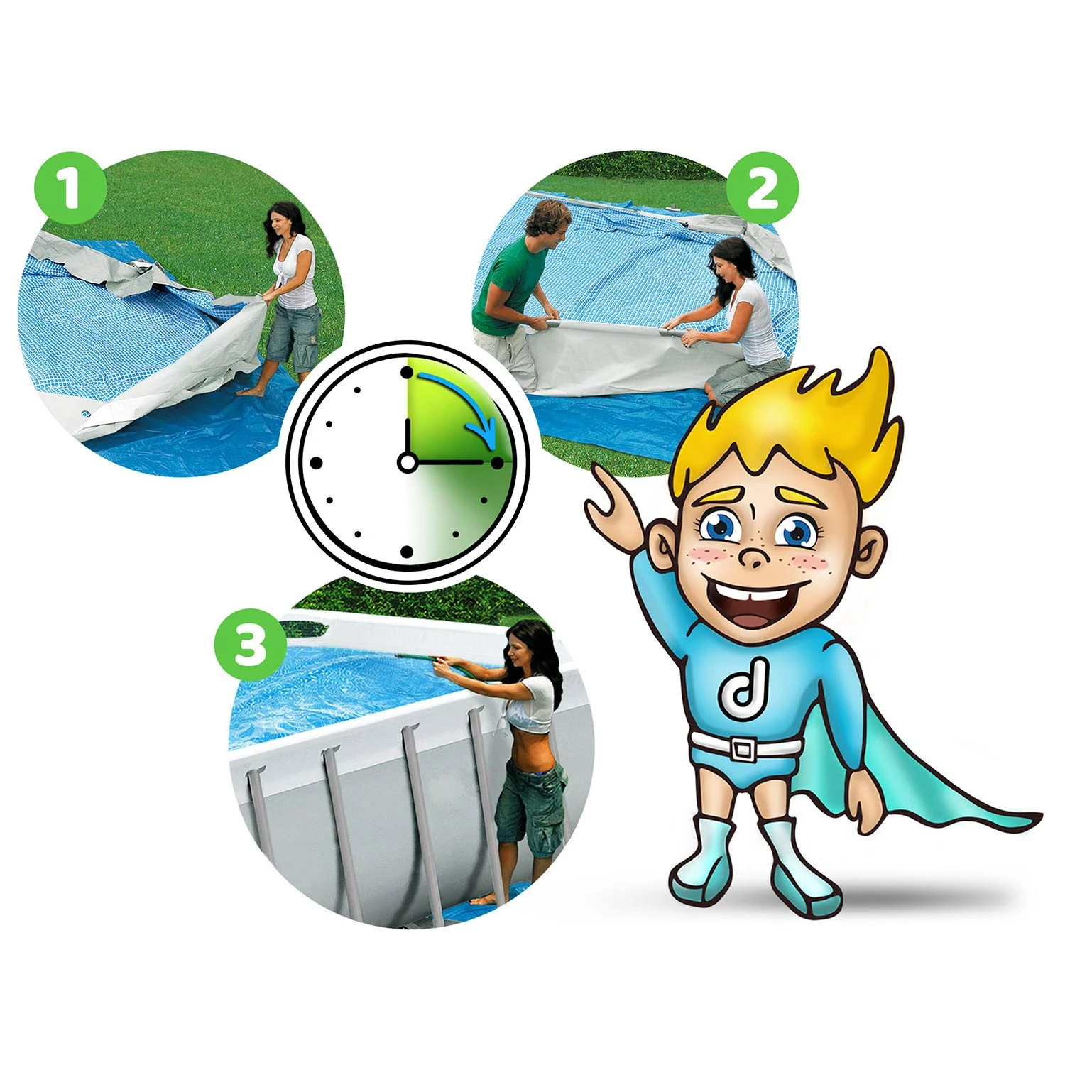 Teraz rozłożenie tak dużego basenu zajmie Ci kilka chwil