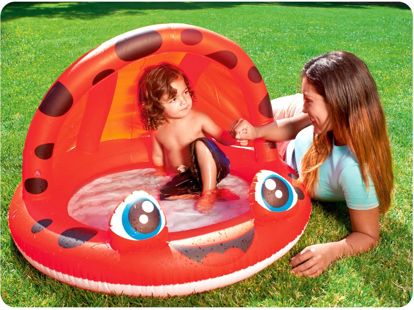Idealny produkt dla najmłodszych. Mogą pluskać się w wodzie pod daszkiem, który ochroni je przed zbyt dużym słońcem.