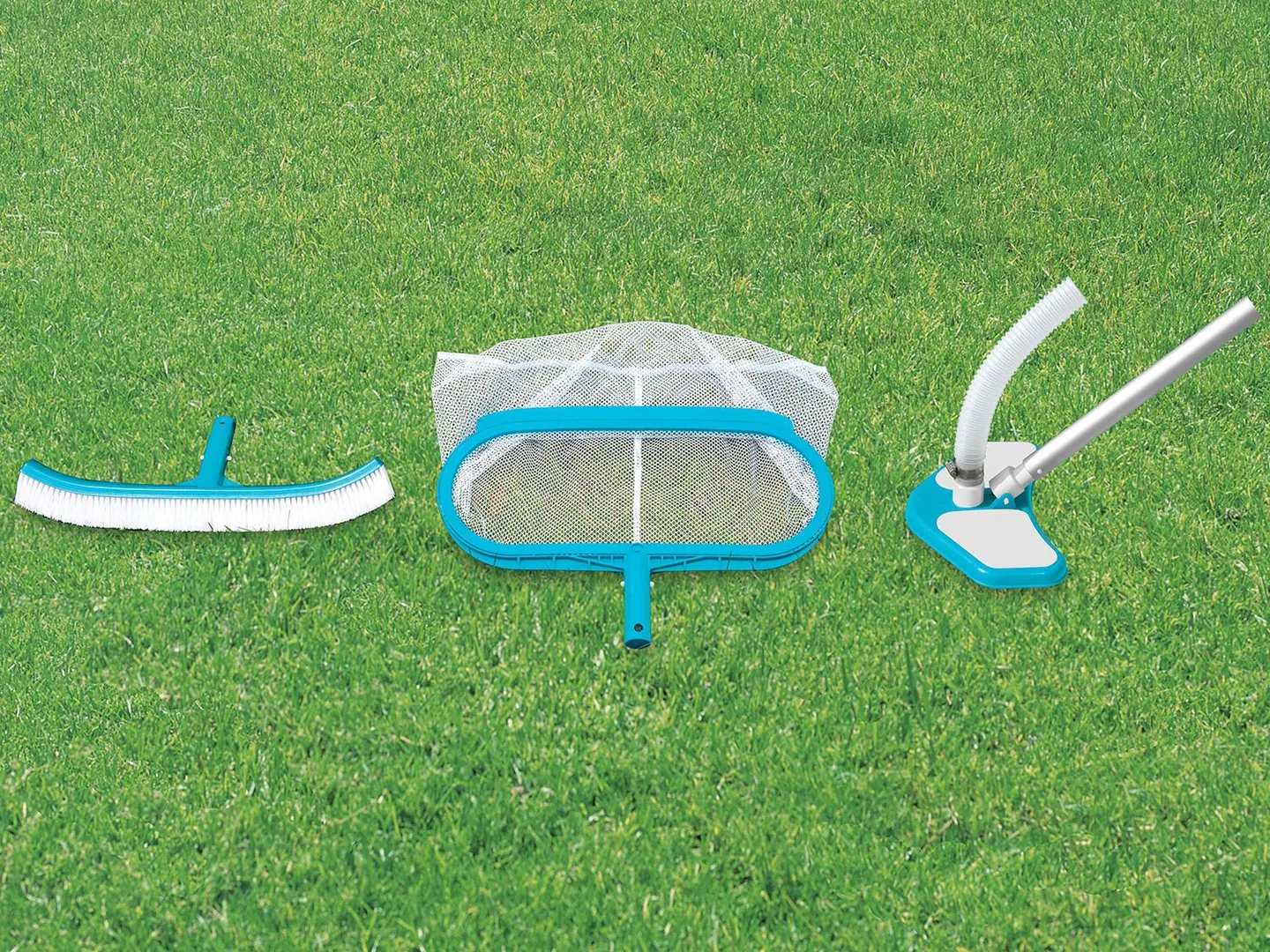 Dostępny na tej aukcji zestaw akcesoriów zawiera komplet końcówek od INTEX niezbędnych do szybkiego i skutecznego wyczyszczenia basenu.