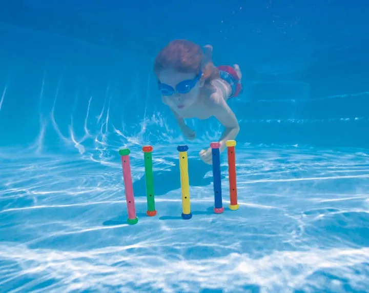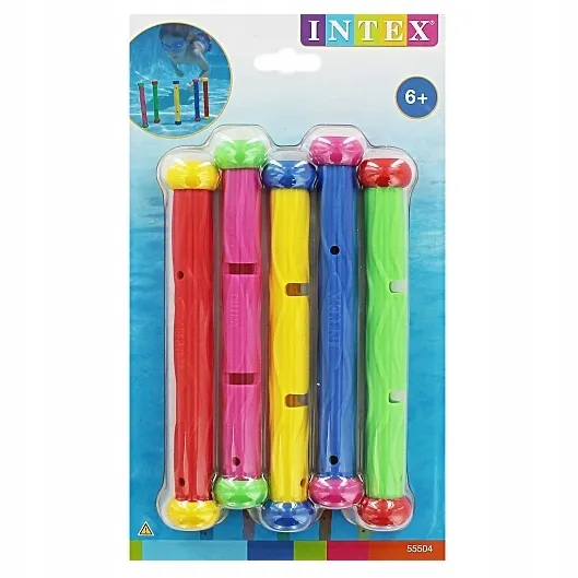 Podwodne pałeczki marki Intex to niezwykle przydatne zabawki do oswajania dziecka z wodą podczas nauki pływania. Mogą także służyć do różnego rodzaju zabaw dydaktycznych i ruchowych.