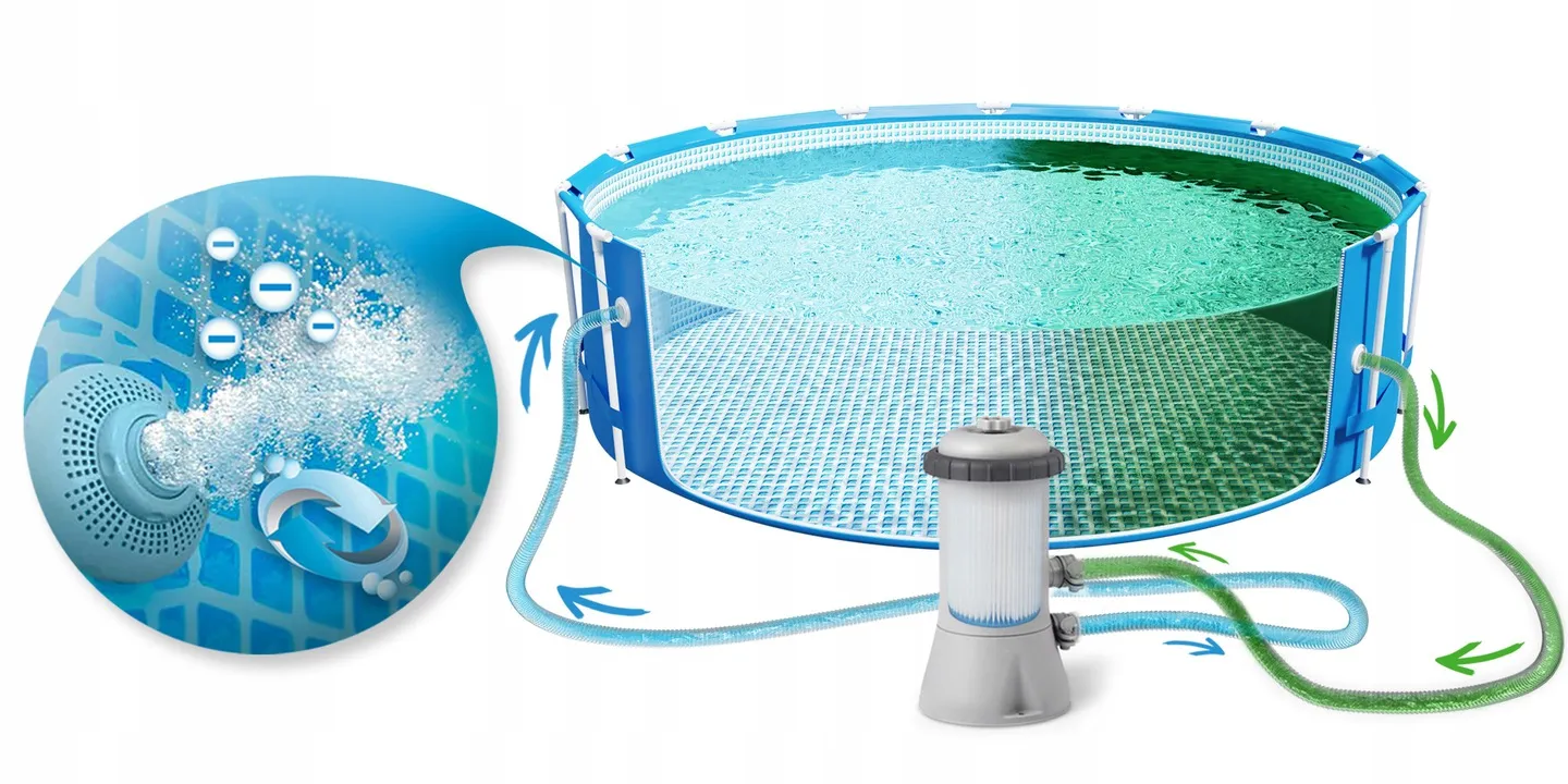 Intex wprowadza rewolucję w basenach ogrodowych - napowietrzanie wody podczas jej filtrowania, dostępna we wszystkich pompach tego producenta. Miliony bąbelków powietrza są wytwarzane przez pompę, czyniąc wodę łatwiejszą do czyszczenia i filtrowania.