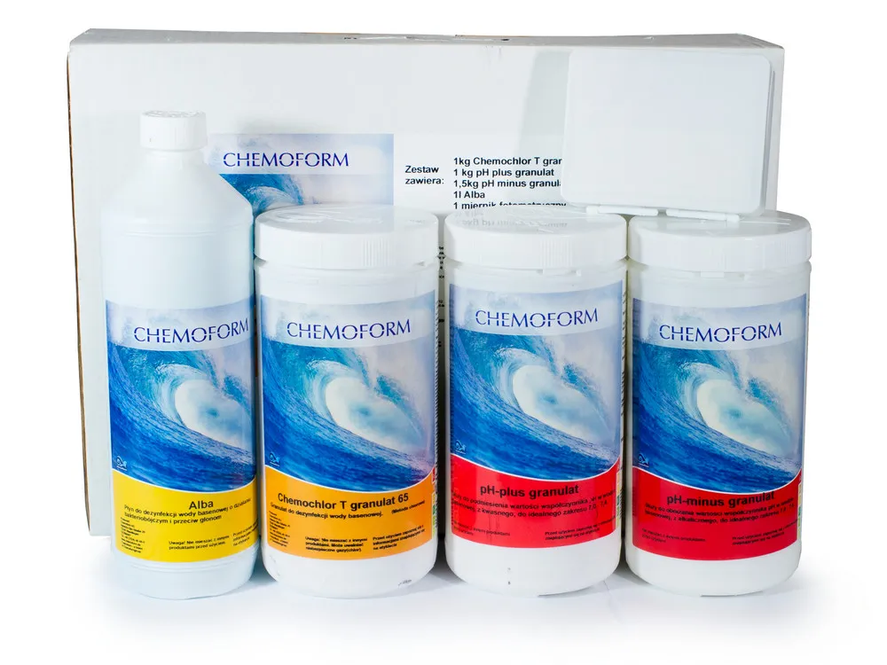 Zestaw chlorowy do zachowania czystości w basenie Starter Set kompleksowo zadba o wodę w twoim zbiorniku. Odpowiednia pielęgnacja jest wymagana, aby w pełni korzystać z wszelkich atutów letnich kąpieli. Urządzenia mechaniczne zatrzymują zanieczyszczenia, jednak te najmniejsze mogą przejść przez filtr. Mowa tu m.in. o bakteriach, glonach czy grzybach, które rozwijając się, mogą pokryć ścianki basenu nieestetyczną, śliską, zieloną warstwą. Nie jest to przyjemny widok, dlatego należy dołożyć wszelkich starań, aby uniknąć takiej sytuacji.