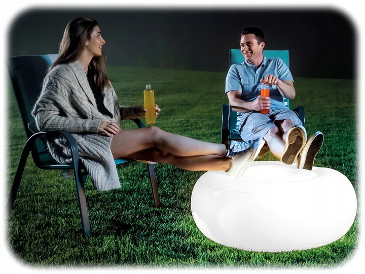 Zamień swój ogród w bajeczne miejsce dzięki świetnie prezentacyjnym się nadmuchiwanym lampom OTTOMAN firmy Intex.  Te stylowe, nadmuchiwane lampy są łatwe w użyciu, wystarczy, że naładujesz wbudowany akumulator i nadmuchasz lampkę i w kilka chwil będziesz mógł uwolnić wodze swojej fantazji w urządzaniu swojego podwórka. Budowanie niesamowitego klimatu pozwalają wbudowane 12 białe diody oraz 1 RGB, przez co lampę możesz ustawić na ciepłą biel lub płynnie zmieniające się ustawienie wielokolorowe, aby dostosować je do nastroju.