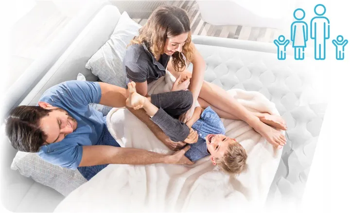 Rozmiary materaca pozwalają na komfortowe użytkowanie go przez przynajmniej dwie dorosłe osoby. Znajdzie się także sporo miejsca dla rozespanych maluchów.
