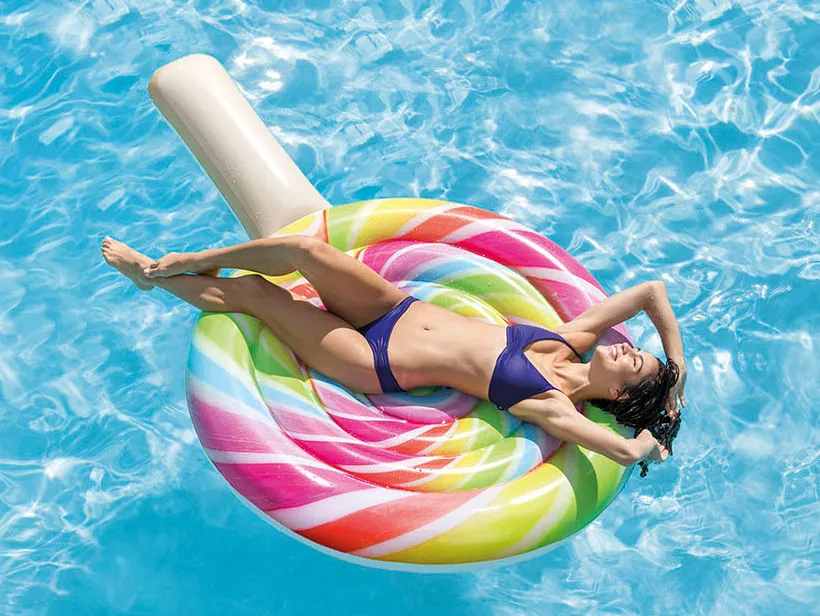 Dmuchany materac do pływania Intex w motywie kolorowego lizaka to niepowtarzalny gadżet na plażę, który pozwoli Ci spędzić urlop w wyjątkowy sposób. Kompozycja kolorów i oryginalny kształt zachwycą Cię już od pierwszej chwili. Już nigdy nie będziesz chciał wrócić do zwykłych materaców na plażę. To absolutny hit nadchodzącego sezonu!