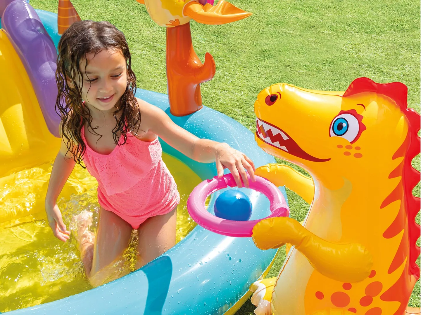 Dzięki wszystkim kolorowym elementom dzieci mogą wybierać z rożnych wariantów zabaw: zjeżdżać do wody, pluskać się w baseniku czy rzucać piłeczkami. Ten Plac zabaw zapewni im rozrywkę na wiele godzin.
