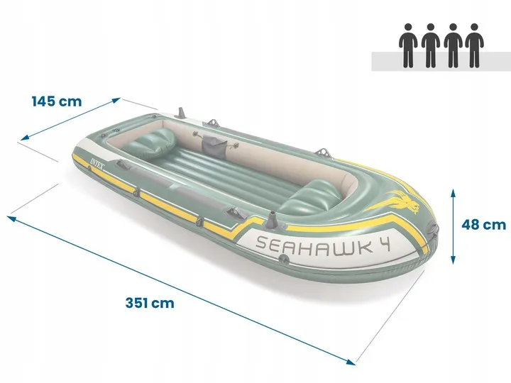 Ponton Seahawk 4 Set to doskonała propozycja dla Ciebie jeśli uwielbiasz przygody. Ponton zapewni Ci niesamowite wrażenia oraz doskonałą zabawę. Zabierz ze sobą bliską osobę, aby z nią spędzić niezapomniane chwile. Nie ma nic lepszego niż na chwilę oderwać się od rzeczywistości.