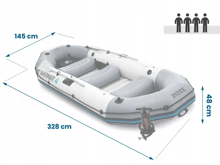 Ponton Mariner 4 Set to doskonała propozycja dla Ciebie jeśli uwielbiasz przygody. Ponton zapewni Ci niesamowite wrażenia oraz doskonałą zabawę. Zabierz ze sobą bliską osobę, aby z nią spędzić właśnie te fajne chwile. Nie ma nic lepszego niż na chwilę oderwać się od rzeczywistości.