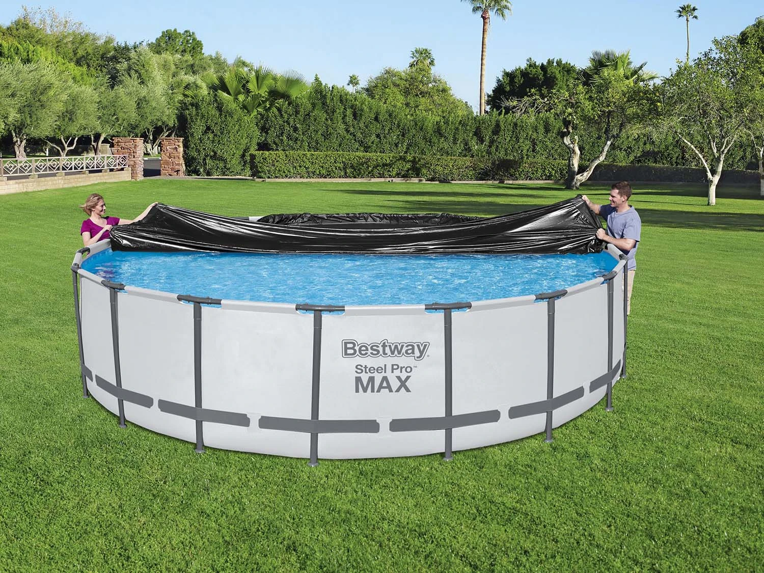 Z pokrywą basenową o średnicy 549 cm marki Bestway zadbasz o bezpieczeństwo swoich bliskich oraz o czystość wody w Twoim basenie. Aby pokrywa nie pękła np. pod naporem deszczu, wyposażono ją w praktyczne otwory, których zadaniem jest odprowadzanie wody z jej powierzchni. Produkt posiada także zabezpieczenie w postaci liny i przeznaczony jest do basenów stelażowych Bestway Frame Pools 549 cm. Pokrywa skutecznie oczyści Twój basen ze wszelkich zanieczyszczeń, a Ty będziesz mógł cieszyć się krystalicznie czystą wodą.