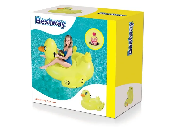 Jednym z nich jest żółta kaczka o wymiarach 1.86 x 1.27. Design i wykonanie tego materaca nawiązuje do kaczki - zabawki kąpielowej dla najmłodszych dzieci.