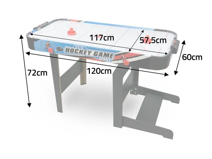 Air Hockey to gra bardzo podobna do klasycznego Cymbergaja. Gracze stojący po dwóch stronach stołu próbują wbić przeciwnikowi krążek do bramki, przesuwając go za pomocą specjalnych odbijaków, a zdobyte punkty zaznaczają na wbudowanych licznikach. Prawda, że zasady są dziecinnie łatwe? Piłka nożna też polega "tylko" na tym, że piłka jest okragła, a bramki są dwie. Podobnie jest z Air Hockeyem ? proste zasady, a frajda płynąca z gry nie ma sobie równych.