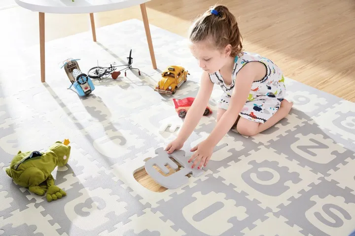 Puzzle to też genialna opcja na świetną zabawę dla Twojego dziecka. Dodatkowym atutem maty jest jej antypoślizgowość, dzięki czemu Twoje dziecko ma swobodę brykania bez obawy o przemieszczanie się maty.