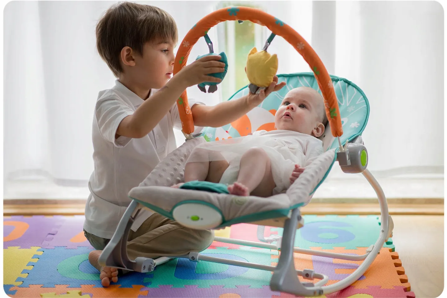 Wystarczy włączyć wibracje w leżaczku i ułożyć wygodnie malucha. Dziecko się zrelaksuje i po chwili zaśnie, a Ty będziesz mógł przez chwilę zająć się swoimi obowiązkami.