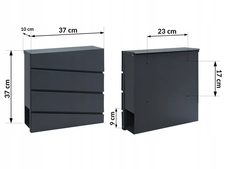 Duże drzwiczki zapewnią nieskomplikowane wyjmowanie przesyłek. Dzięki gumowym podkładkom montowanym u klapy, zamykanie jej nie powoduje hałasu.