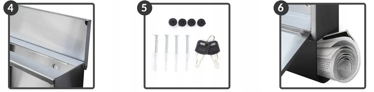 Otwory wrzutowe ze specjalnie wyprofilowaną zakładką chroni korespondencję, nie tylko przed odpadami, ale i nadmierną ciekawością osób niepowołanych.