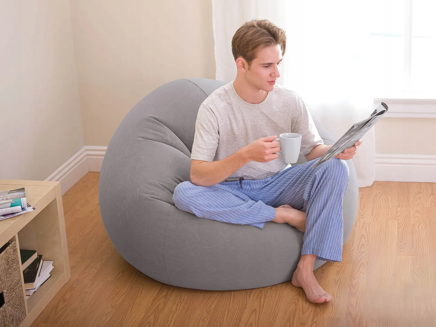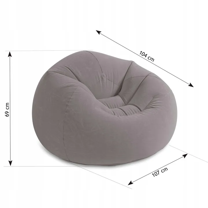Najwyższa jakość gwarantowana przez producenta Intex ? lidera dmuchanych mebli. Dzięki użytemu materiałowi i szaremu kolorowi pufa zyskuje wygląd eleganckiego mebla, aż trudno uwierzyć, że to dmuchany fotel.