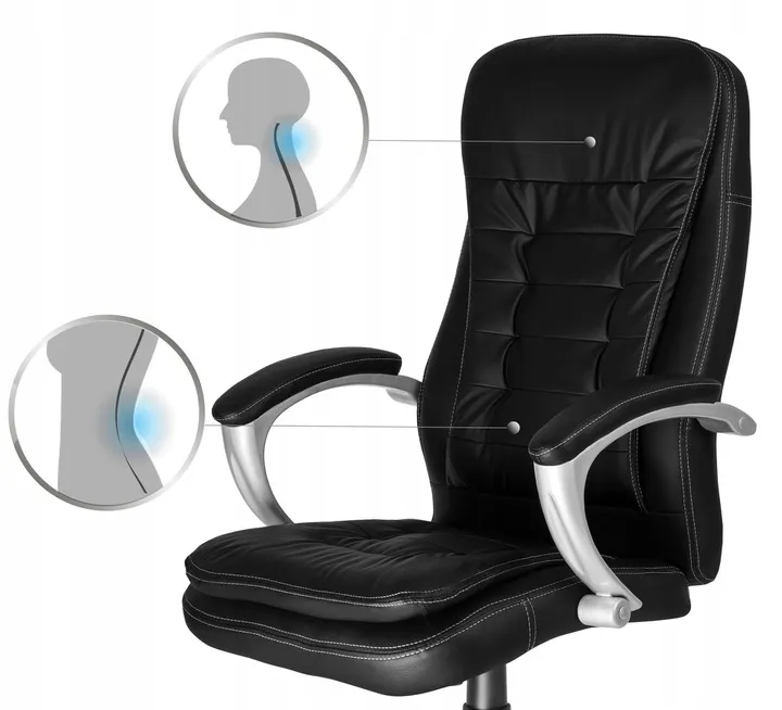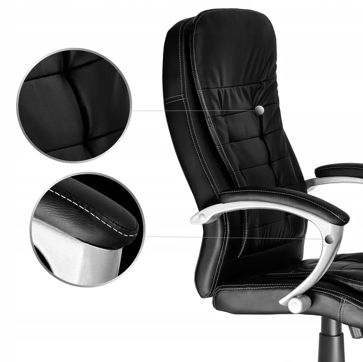 Czarna ekoskóra efektownie się prezentuje i jest bardzo praktyczna ? co jest najważniejsze przy wyborze mebli biurowych. Materiał jest wytrzymały, a więc odporny na uszkodzenia i łatwy w pielęgnacji i czyszczeniu.