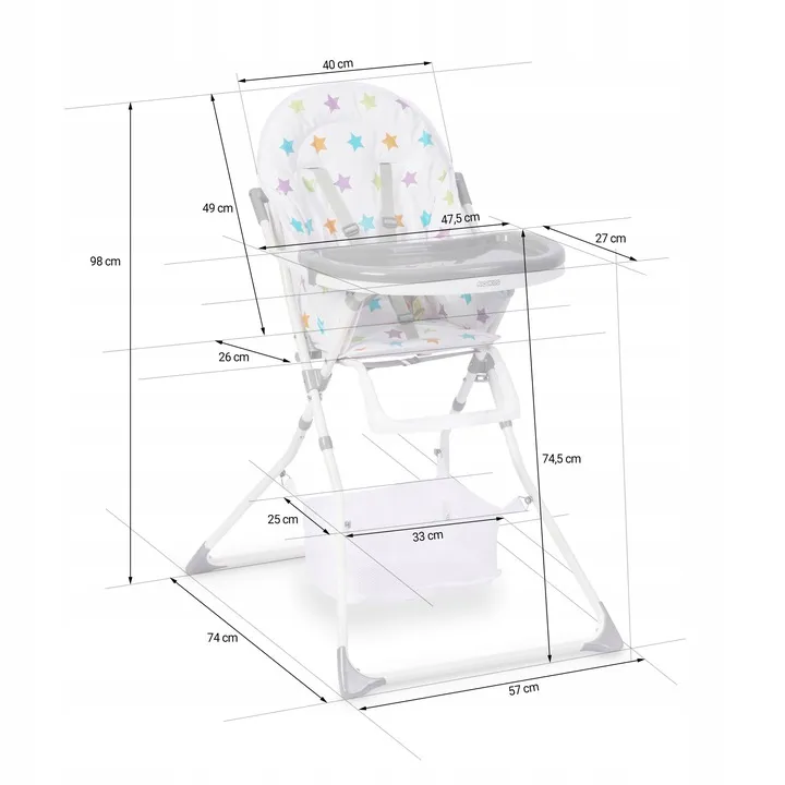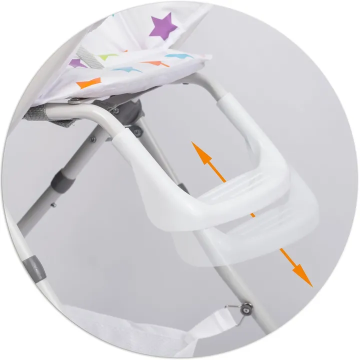 Krzesełko bardzo łatwo się składa, dlatego bez problemu je przeniesiesz lub schowasz w dowolnym miejscu.