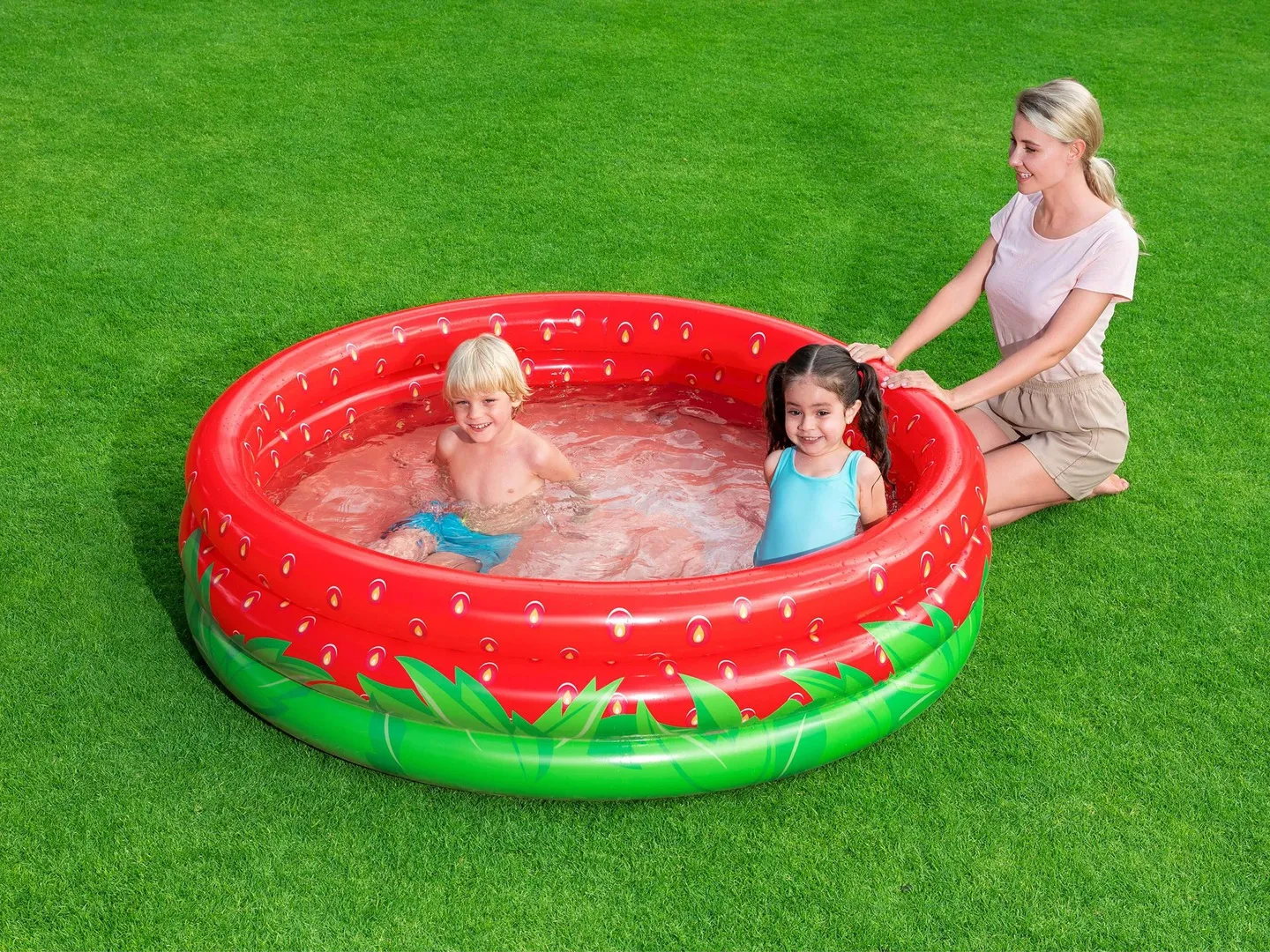 Prezentowany basenik wyróżnia się naprawdę solidną konstrukcją, którą tworzą trzy niezależne dmuchane pierścienie. Dzięki temu, że są grube i solidnie wykonane, zapewniają stabilność całej konstrukcji i posłużą maluchom jako wygodne oparcie.