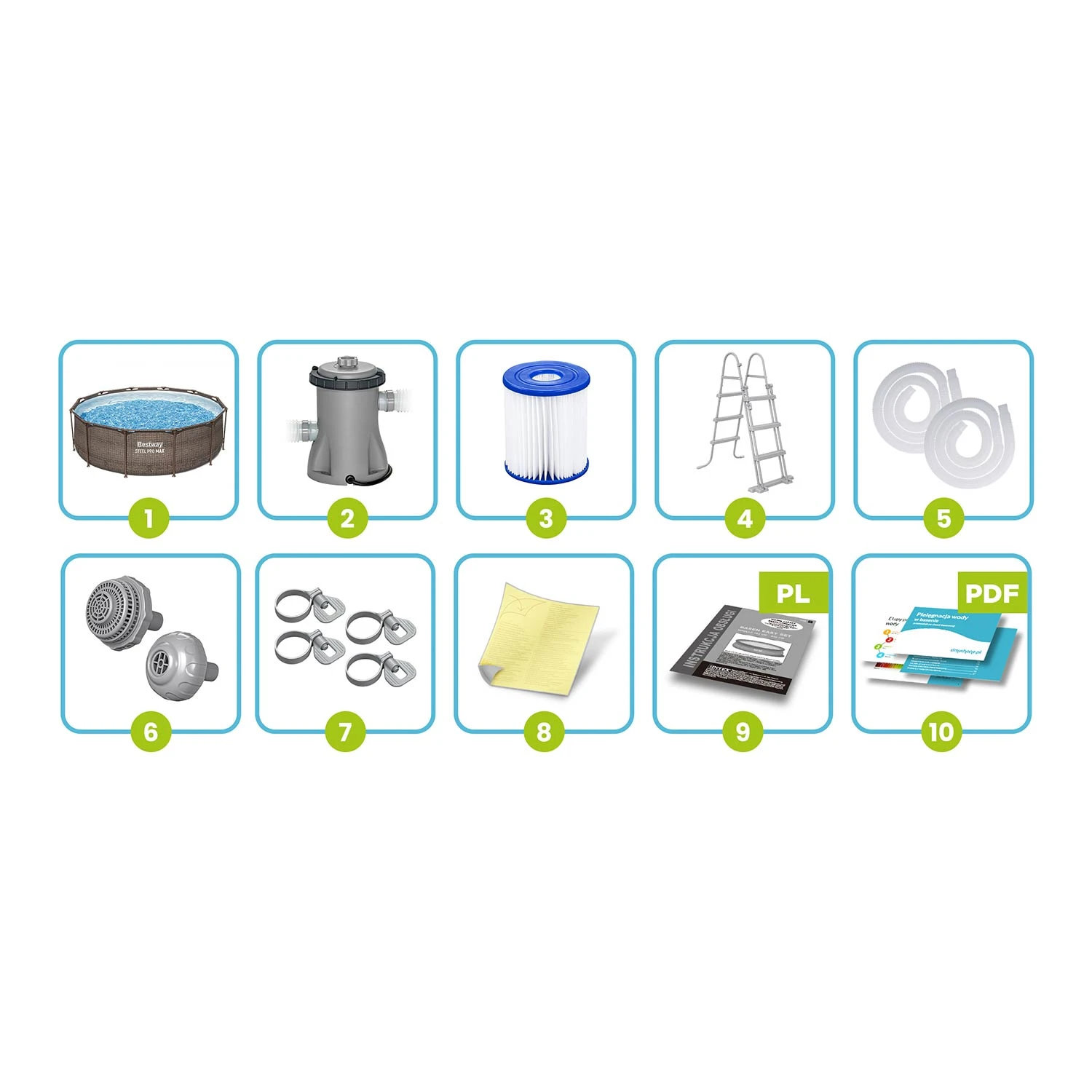 Zestaw basenowy4w1 (pompa, filtr, drab., pok. lub mata)