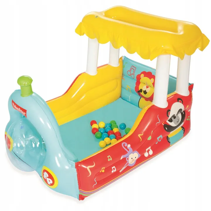Dmuchany kojec Pociąg dla dzieci to wyjątkowe miejsce do zabawy. Pozwoli dziecku stworzyć własny kącik wypełniony kolorowymi piłeczkami lub misiami.