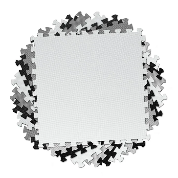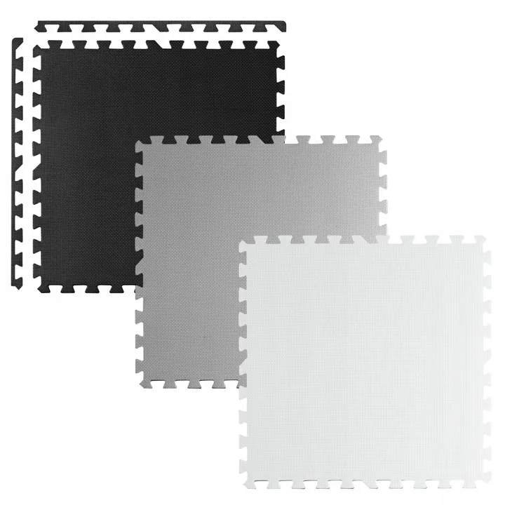Puzzle można łączyć w dowolnej konfiguracji. To od Ciebie zależy czy ułożysz je w szachownicę, czy też złączysz tak, że pół maty będzie kremowa, a pół szara.