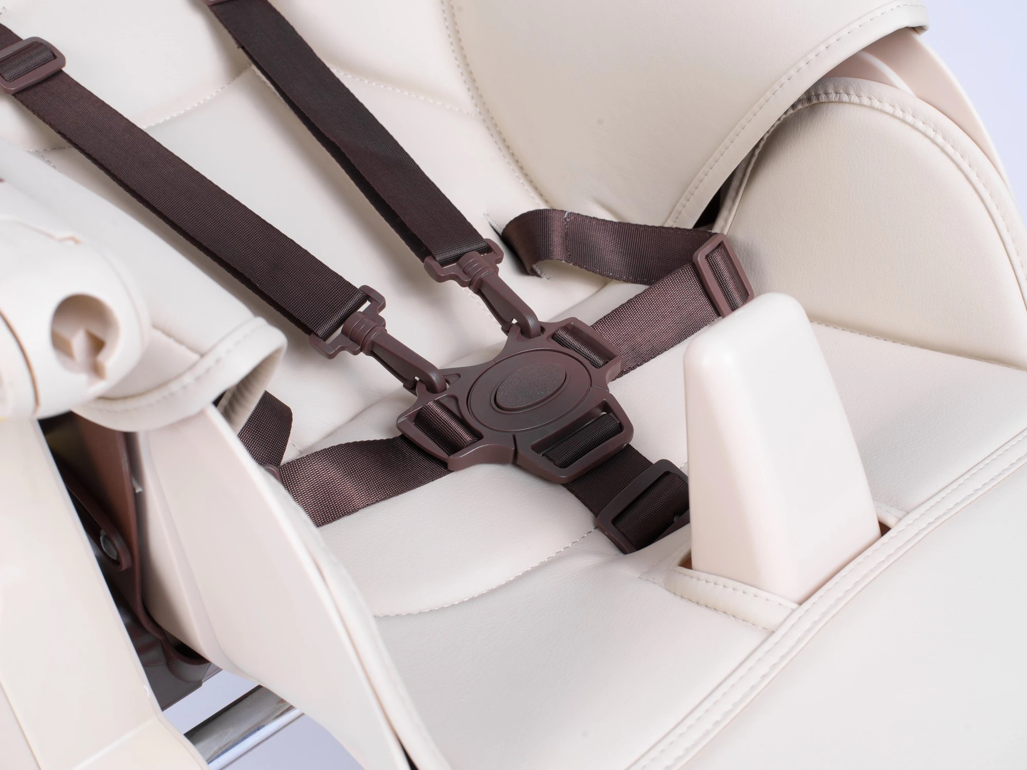 3. 5-punktowe pasy bezpieczeństwa zapinane szybką klamrą zapewnią stabilną pozycję malucha w krzesełku