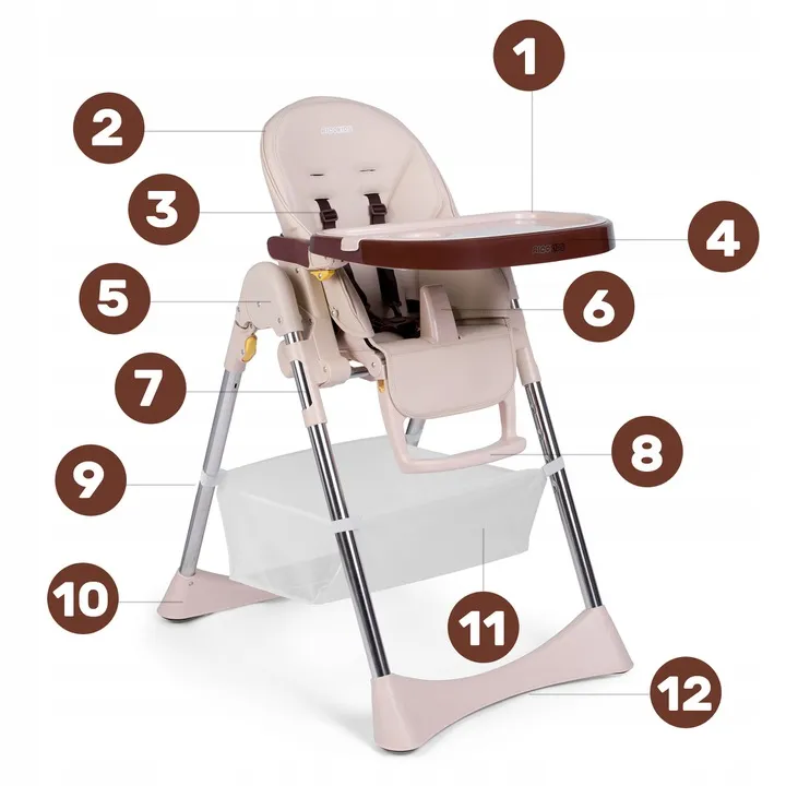 11. podręczny, odpinany koszyk na zabawki i inne przedmioty (pieluszki, chusteczki, śliniaczek)