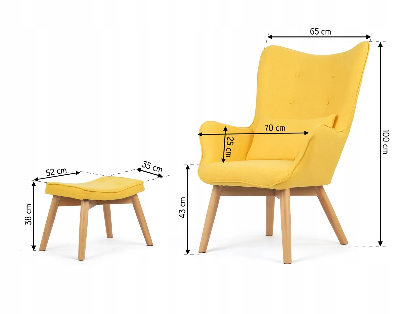 Zawartość zestawu: fotel, podnóżek, poduszka