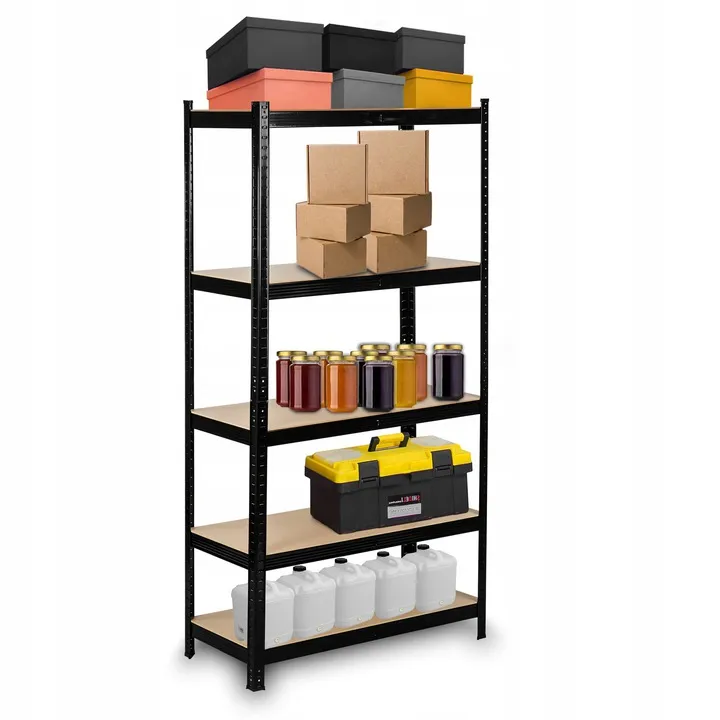 Funkcjonalny i stabilny regał magazynowy w kolorze czarnym, który znakomicie sprawdzi się w: