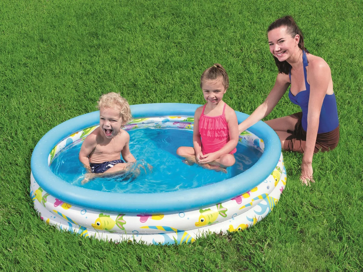 Basenik dmuchany w rybki Bestway idealnie nadaje się do ogrodu.