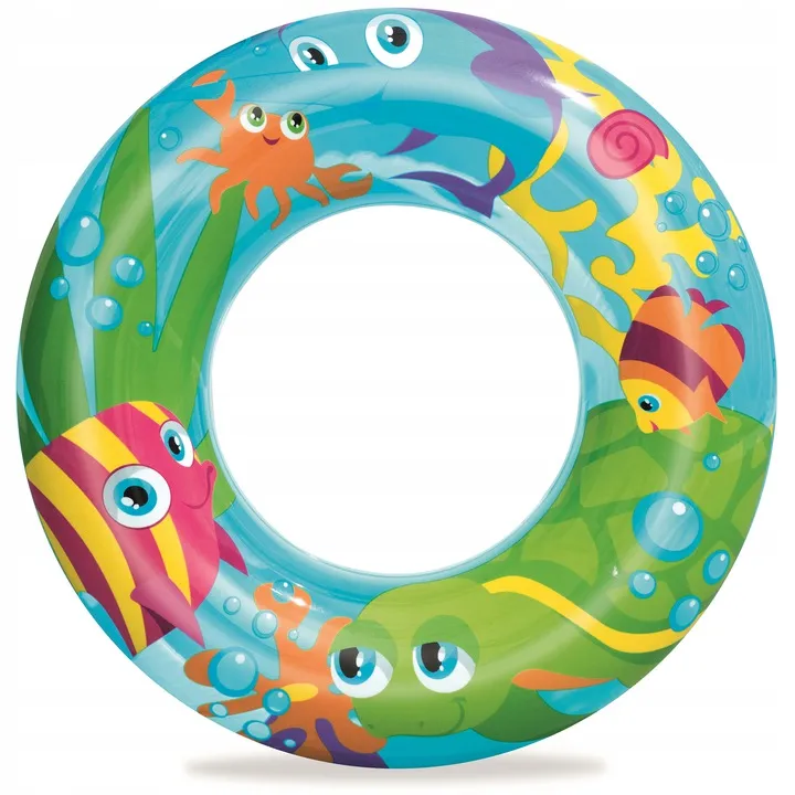 Kółko dla dzieci o średnicy 56 cm Bestway. Twój maluszek uwielbia bawić się w wodzie? Podaruj mu wyjątkowy prezent i spraw, by to lato okazało się wyjątkowe. Koło do pływania Bestway o średnicy 56 cm wykonano z mocnego PVC ozdobionego kolorową grafiką z uśmiechniętymi postaciami. Zabawka nadaje się do zabawy zarówno w morzu, jeziorze czy nawet na basenie. Koło przeznaczone jest dla dzieci w wieku od 3 do 6 lat. Produkt występuje w trzech wesołych wzorach.