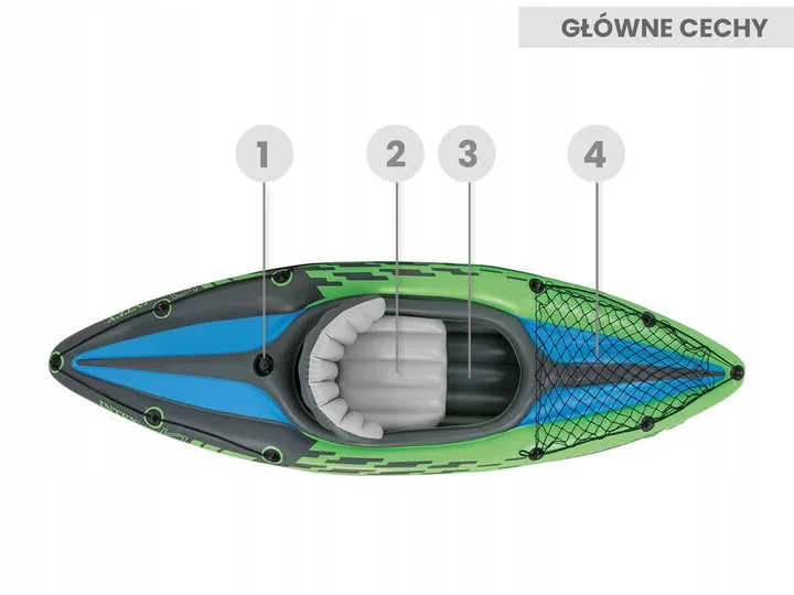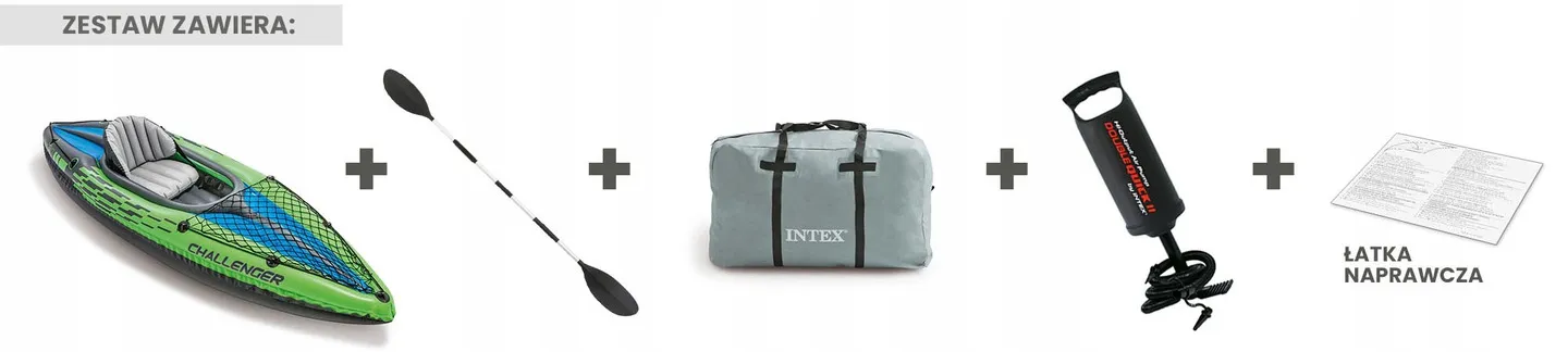 Jednak to nie wszystko, co oferuje Ci marka Intex w tym zestawie. Do kajaku dołączone jest wygodne, lekkie i trwałe wiosło o bardzo dobrych parametrach. Prezentowany zestaw Intex obejmuje również pompkę, dzięki której w kilka minut przygotujesz kajak do spływu. To idealny zestaw na jeziora i spokojne rzeki.