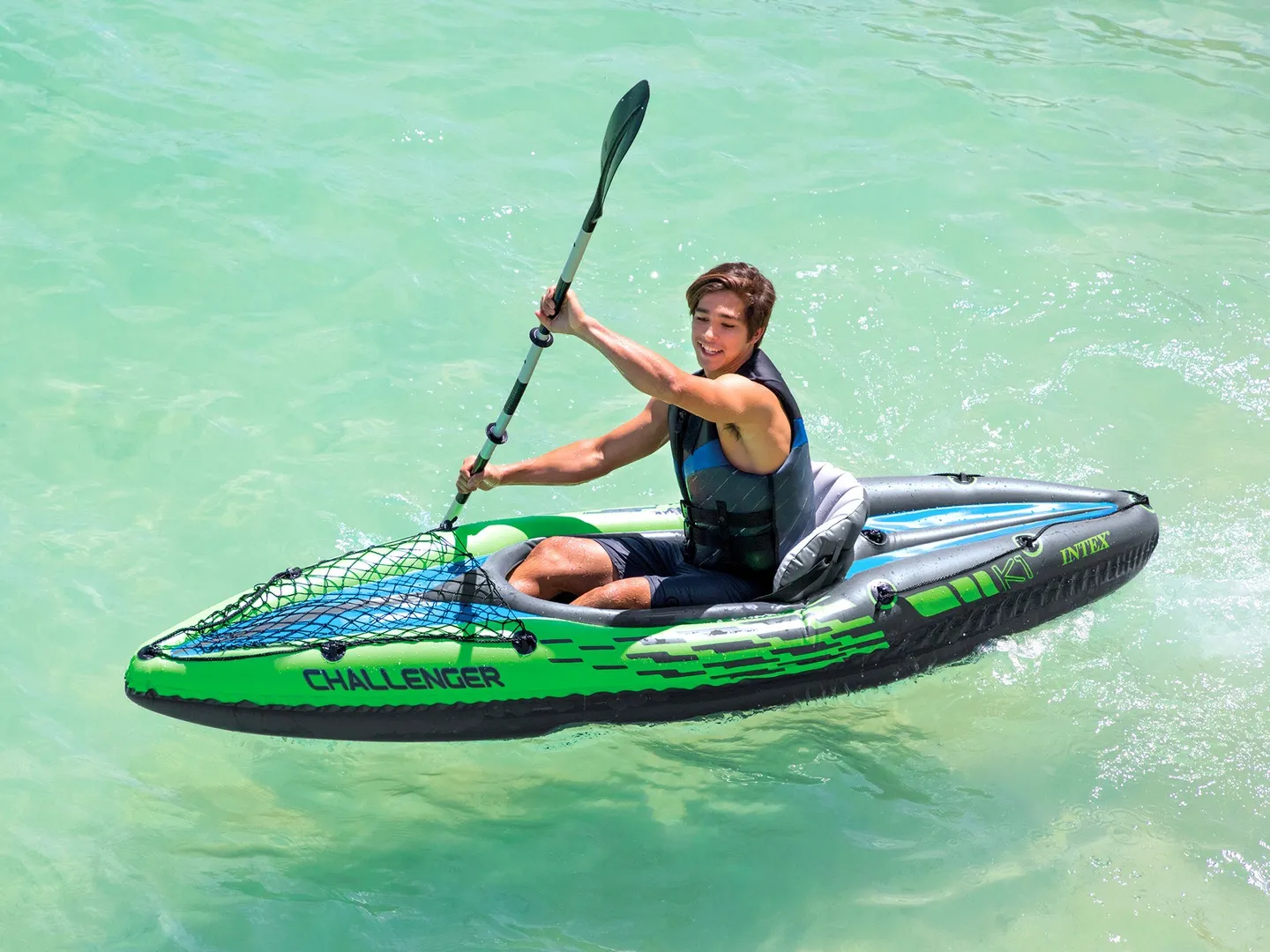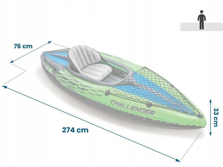 Kajak Challenger K1 z wiosłami i pompką to doskonała propozycja dla Ciebie jeśli uwielbiasz przygody. Ponton zapewni Ci niesamowite wrażenia oraz doskonałą zabawę. Zabierz ze sobą bliską osobę, aby właśnie z nią spędzić te chwile. Nie ma nic lepszego niż na moment oderwać się od rzeczywistości i wypocząć na łonie natury.