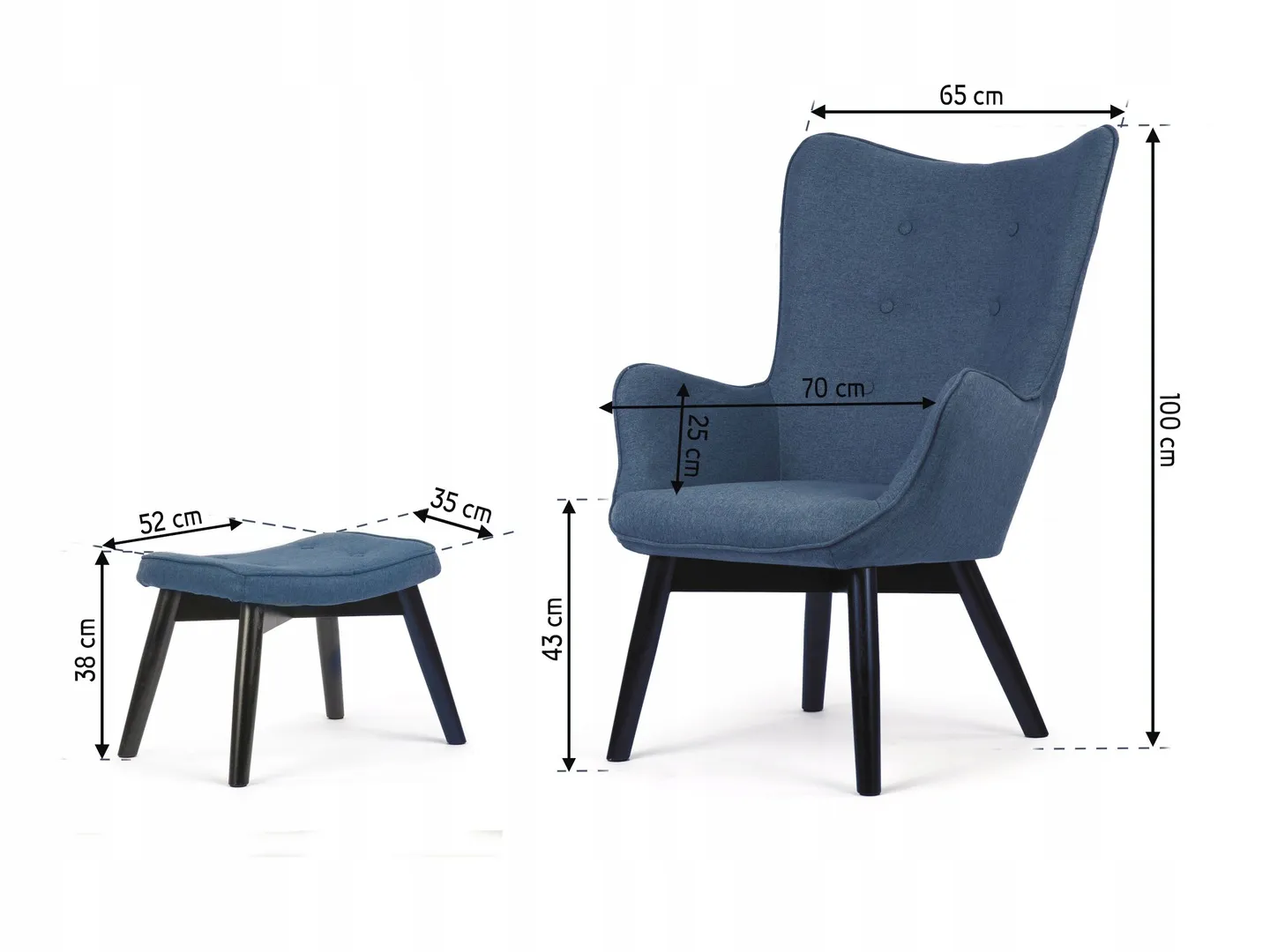 Zawartość zestawu: fotel, podnóżek, poduszka