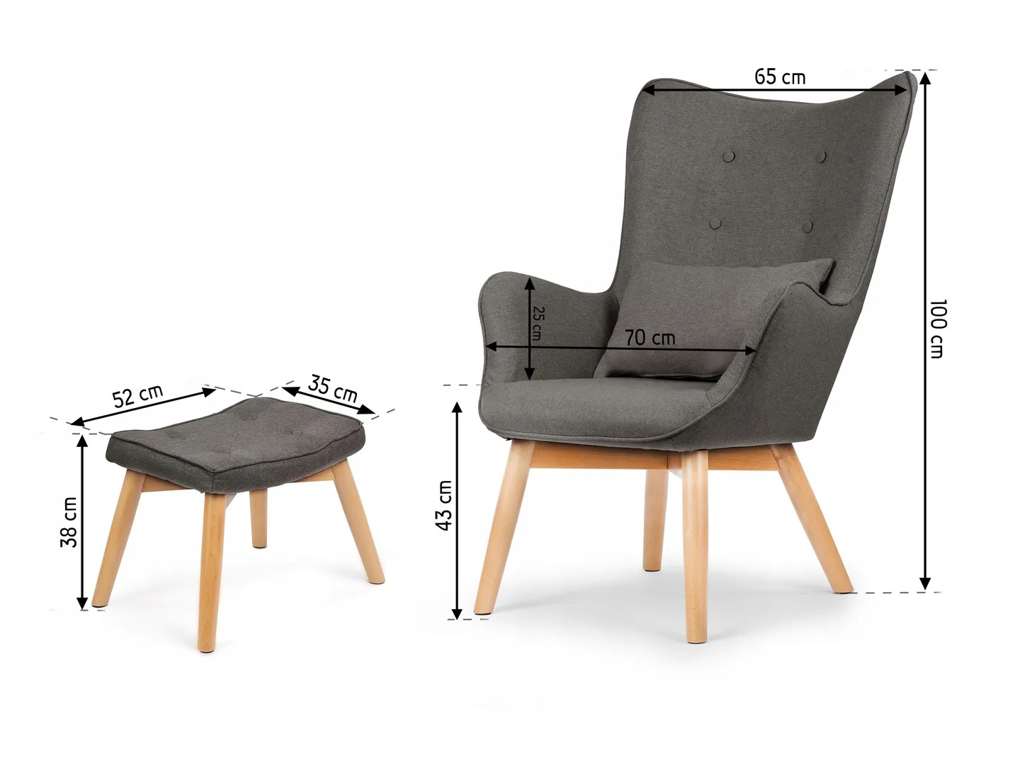 Zawartość zestawu: fotel, podnóżek, poduszka