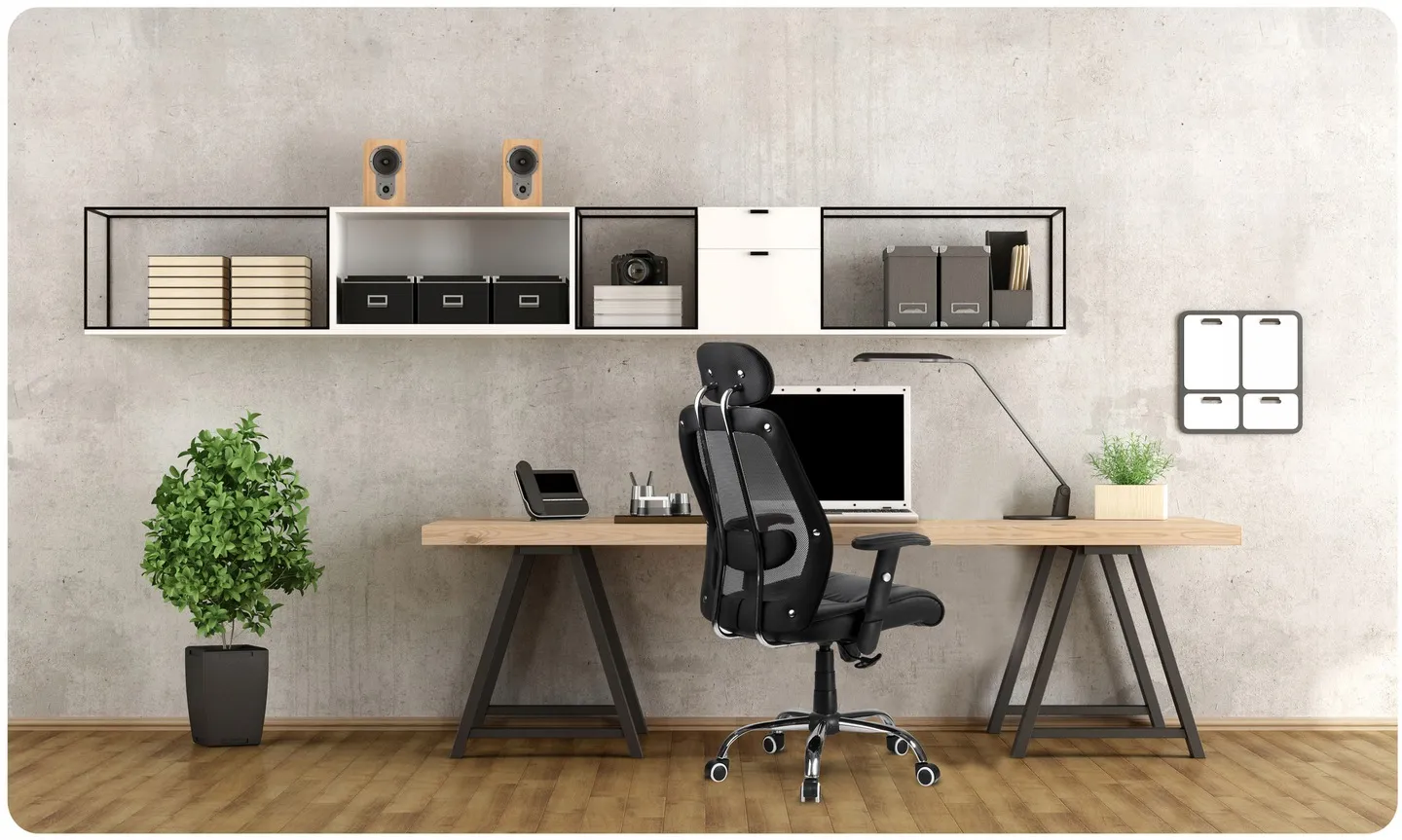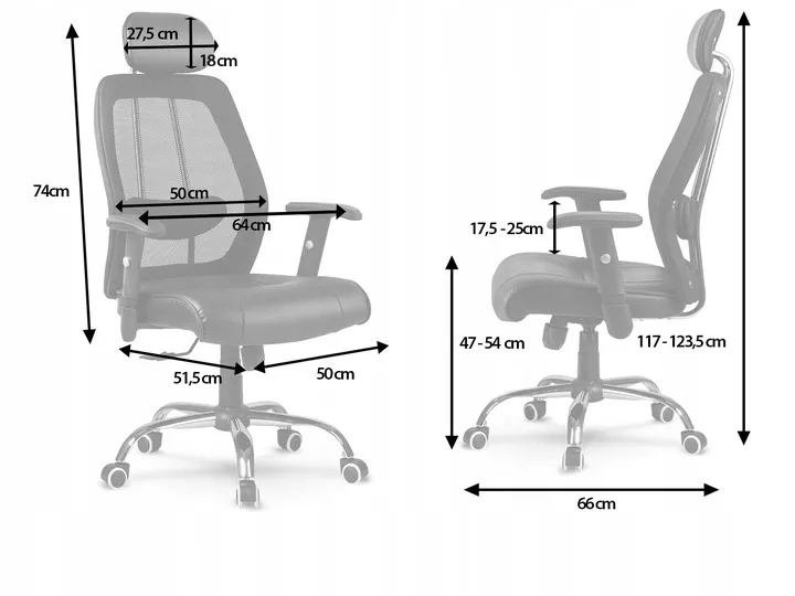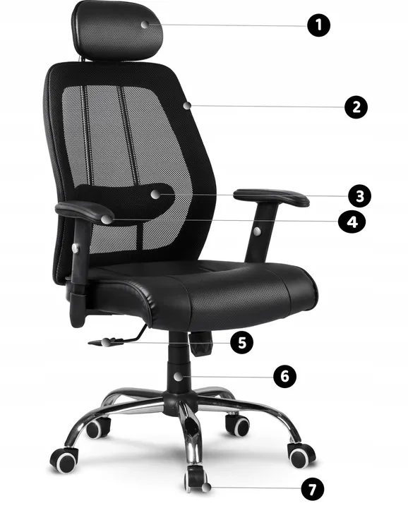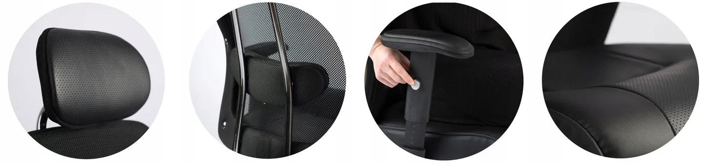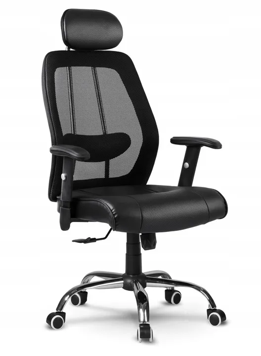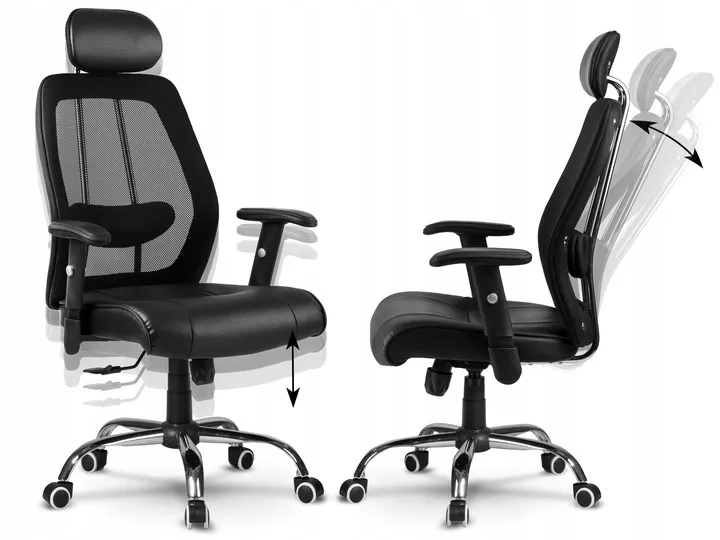 Miękki materiał PU, przewiewna mikrosiatka, regulowane podłokietniki i profilowane oparcie z zagłówkiem sprawią, że w każdych warunkach poczujesz pełnię komfortu podczas pracy.