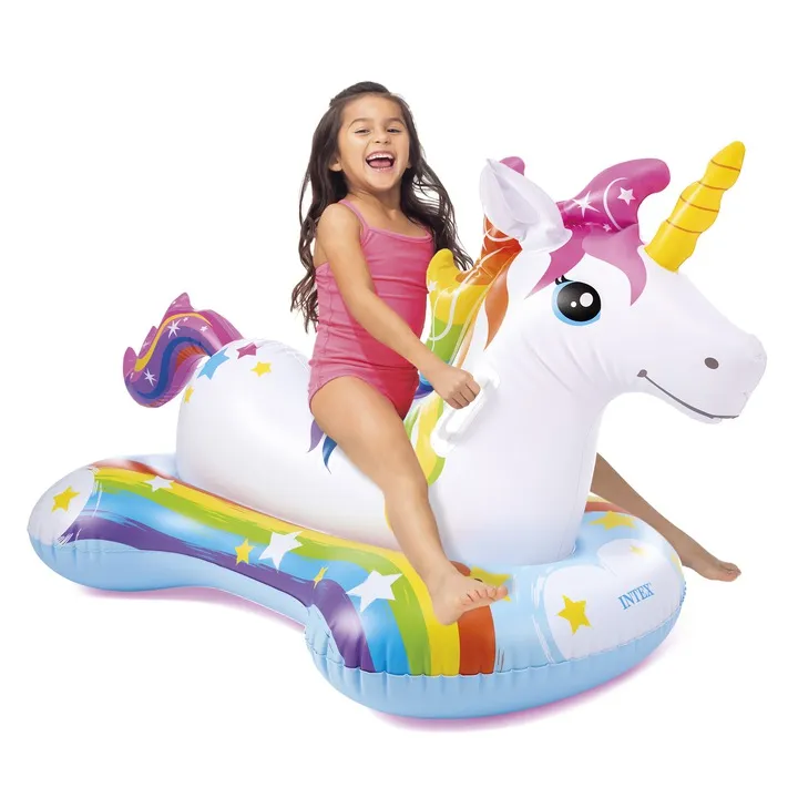Wyróżnij się na plaży i zapewnij sobie wyjątkowy relaks dzięki dmuchanemu materacowi od marki Intex. Zabawka do pływania Jednorożec to absolutny hit sezonu! Niebanalny kształt, forma i ciekawa kolorystyka przyciągną wzrok wszystkich plażowiczów.