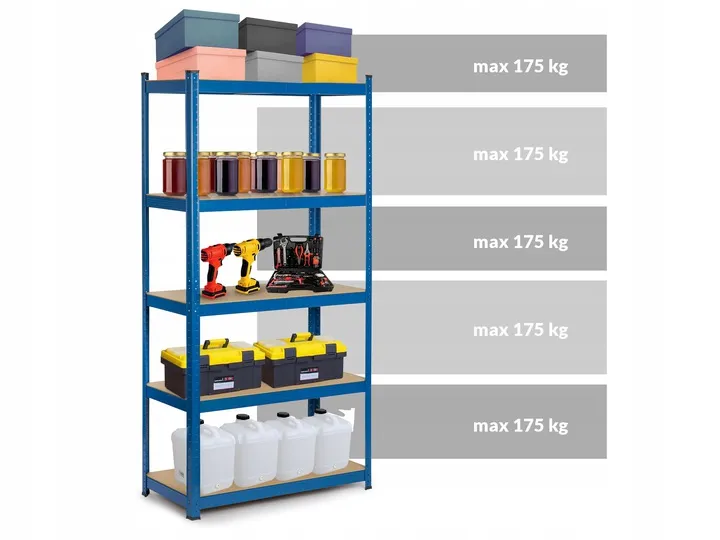Regał składa się z 5 półek, a jego maksymalne obciążenie to aż 875 kg!