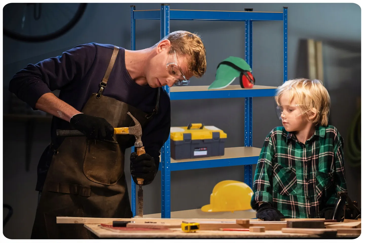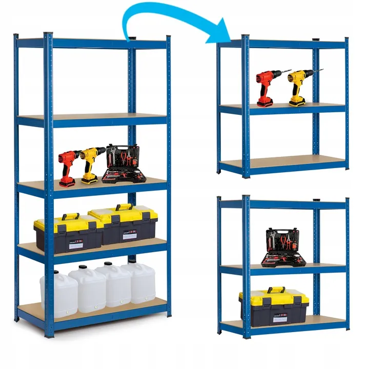 Funkcjonalny i stabilny regał magazynowy w kolorze niebieskim, który znakomicie sprawdzi się w: