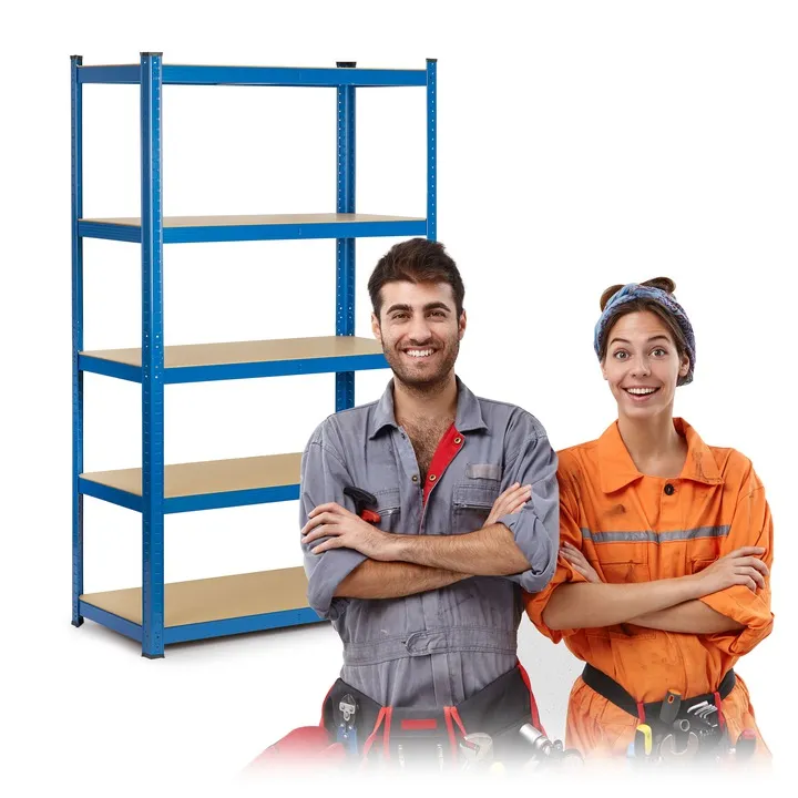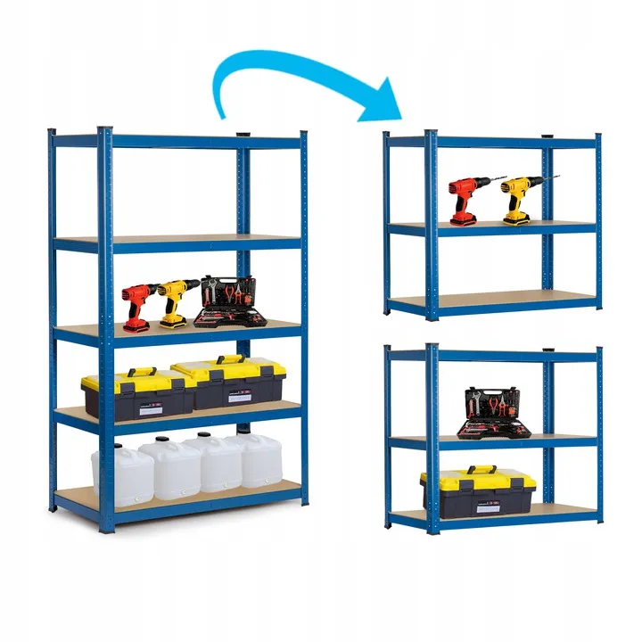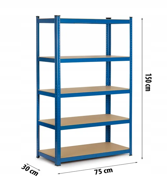 Funkcjonalny i stabilny regał magazynowy w kolorze niebieskim, który znakomicie sprawdzi się w: