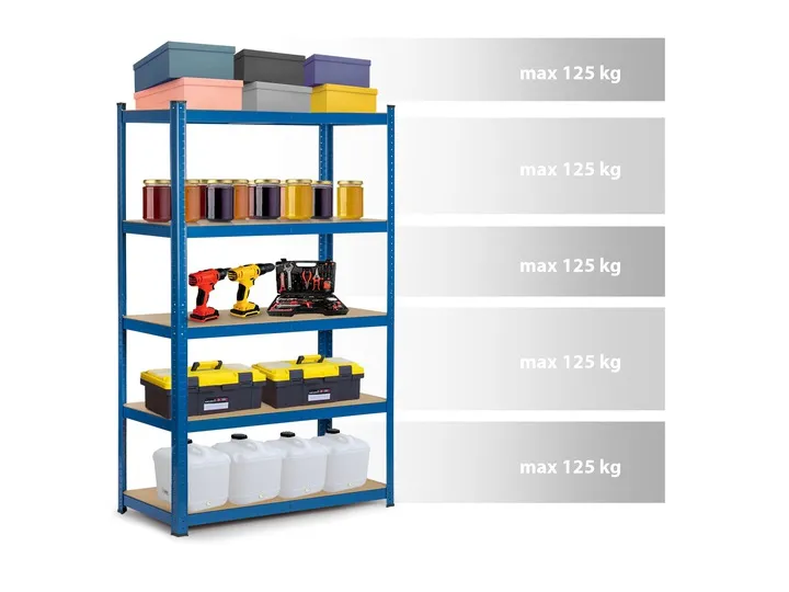 Regał składa się z 5 półek, a jego maksymalne obciążenie to aż 625 kg!
